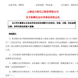 2月4日,*ST金泰再次发布《关于拟聘任会计师事务所的公告》。公告显示,公司拟聘任永信瑞和(深圳)会计师事务所(特殊普通合伙)担任2025年度财务报告及内部控制审计机构,聘期一年。