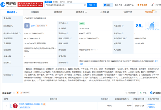 消息面上,1月23日,名雕股份成立了广东云犀互动传媒有限公司,注册资本为6500万元,经营范围涵盖人工智能基础软件开发、应用软件开发、通用应用系统及公共服务平台技术咨询等多项AI相关业务。