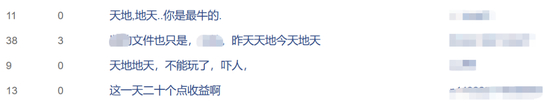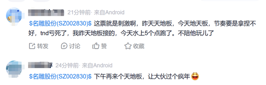 对此,股民纷纷表示:“这票就是刺激”“下午再来个天地板”“一天二十个点收益”“不能玩了,吓人”。