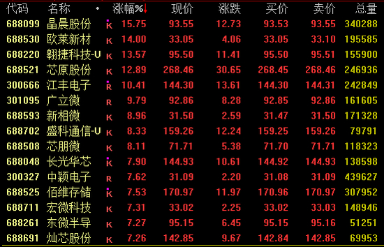 半导体板块盘中大幅走高,截至收盘,晶晨股份涨近16%,芯原股份涨近13%,江丰电子涨超10%,盛科通信等涨超8%。