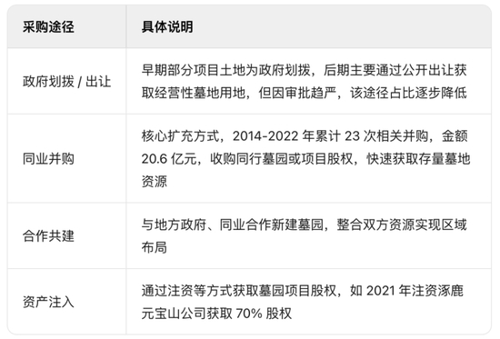 公司获取墓园用地的方式主要有四种:
