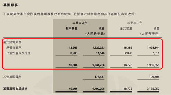 (2023年和2024年墓园服务收入构成,2024年年报)