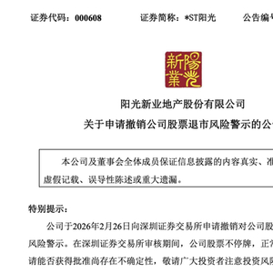 根据《深圳证券交易所股票上市规则》(2025年修订)第9.3.8条之规定,公司符合申请撤销退市风险警示的条件。2月26日,*ST阳光收于3.62元/股,最新市值约27亿元。