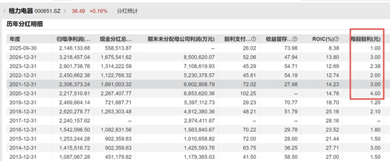 ▲格力电器多年来持续分红。
