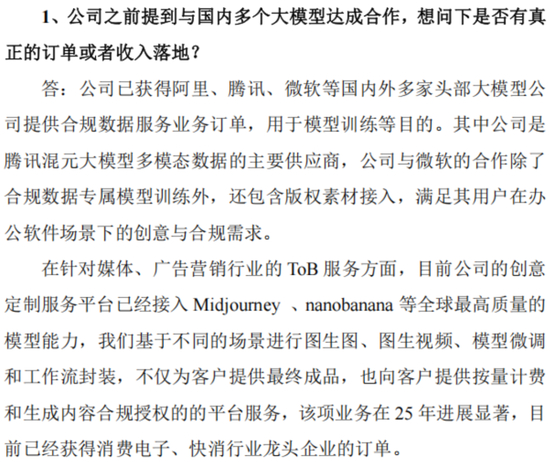 面对投资者关心的与国内多个大模型达成的合作是否有收入落地,公司也并未直接回应。