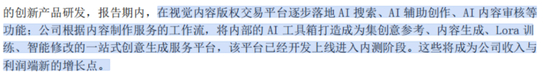 公司持续强调在优化产品服务结构,打造为客户提供AI驱动的创意定制业务。同时围绕核心主业持续加大以AI技术驱动的创新产品研发。