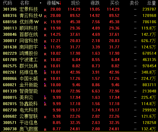 算力概念盘中强势拉升,个股掀涨停潮。截至收盘,优刻得20%涨停,宏景科技、青云科技、顺网科技、拓维信息午后均涨停。
