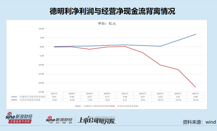 2025年,德明利的归母净利润同比大增96.35%至6.88亿元,但公司经营活动产生的现金流净额却为负值且“失血”加剧,两者严重背离。说明净利润是“纸面富贵”。