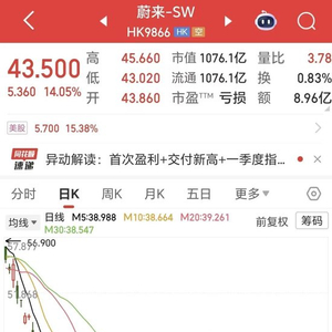 在发布了一份“历史最佳”财报后,蔚来迎来了2026年的高光时刻。3月11日,蔚来-SW(09866.HK)股价盘中一度大涨超19%,市值重回千亿港元大关,领涨整个港股汽车板块 。