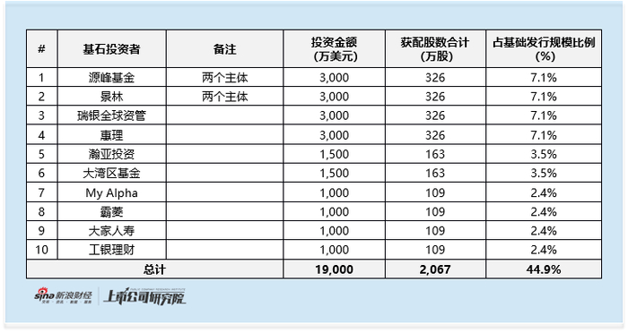 基石投资层面,广合科技本次IPO成功吸引10家主体参与(合并口径),合计投资约1.9亿美元,占基础发行规模的44.9%,且参与机构均为具备市场知名度的专业财务投资者,投资者结构均衡且优质。