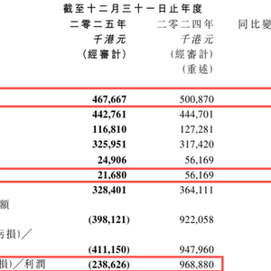 在这一因素影响下,公司2025年录得未经审计非国际财务报告准则(Non-IFRS)经调整亏损约1.92亿港元,而2024年同期则为盈利约9.72亿港元。