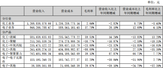 从财务角度看,2025年上半年年,化工板块营收12.7亿,规模最大,包含智算算力在内的电子板块营收9.46亿,其中智算算力营收7.62亿,电子元器件营收1.84亿。接下来,咱们逐一分析。