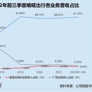 而被嘀嗒出行寄予厚望的智慧出租车业务,自2017年上线以来,始终难有突破,营收不过千万级别。2022年截至9月30日,智慧出租车业务收入约1554.5万元,同比大幅减少超40%,占总营收的比例由2021年同期的4.50%降至3.63%。
