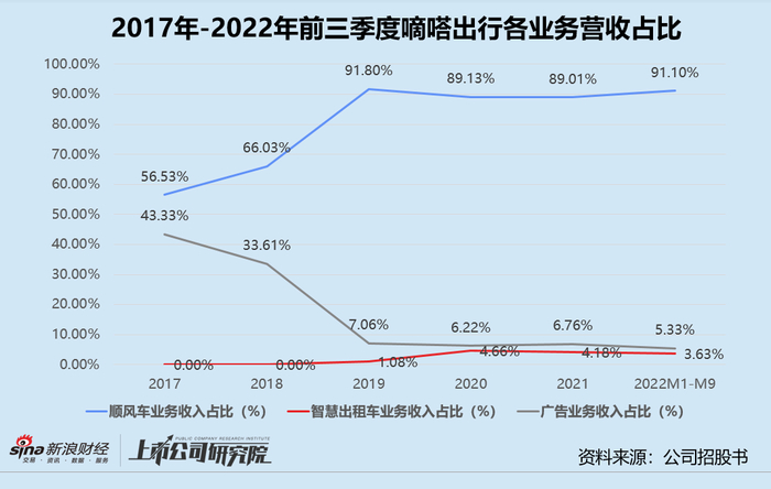 据招股书显示,嘀嗒出行的主营业务主要由顺风车、广告和智慧出租车三部分组成。