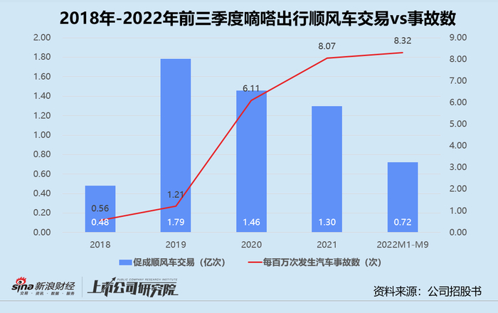 据招股书显示,2019-2021年期间,嘀嗒出行促成的顺风车交易总量呈明显下降趋势。2022年1-9月,平台共完成7210万次顺风车搭乘,同比缩减27.32%。