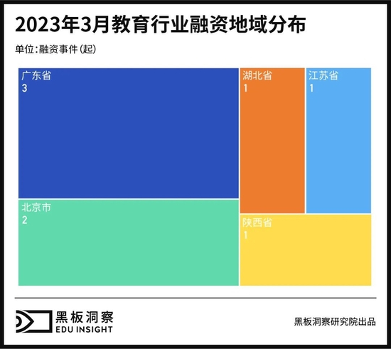 3月全国共有5个省、直辖市发生融资,地域范围相较2月有所扩大,在北京、广东、陕西三地不变的基础上新增江苏、湖北两地。其中,广东以3起的数额力压北京的2起,成为3月融资最为密集的地区;其余三地则各融资1起。吸金程度上,仅以已披露金额的事件计算,广东、北京、陕西三地均有数千万资金入账,湖北、江苏两地则达到百万级规模。