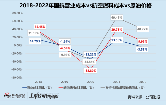 就敏感度而言,在其他变量保持不变的情况下,报告期内平均航油价格每上升或下降5%,国航的航油成本将上升或下降11.38亿元,与2021年相比单位增加1.03亿元。结合往期数据来看,国航的航油成本变动与原油现货价格变动基本同步,疫情后降本增效力度明显加强。