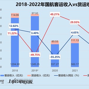 报告期内,国航实现客运收入382.96亿元,较2021年同期下降34.33%,仅约为2019年同指标的三成。国内客运收入同比大幅下滑39.35%,拖累整体业绩表现;货运收入录得100.85亿元,同比减少9.25%,是2019年同指标的1.76倍。国内货运收入与2021年相比缩水29.01%,是造成细分收入负增长局面的主要原因。