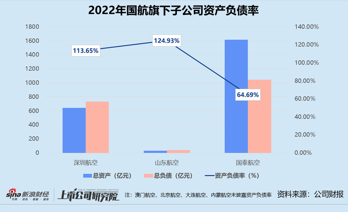国航参股的子公司中,不少也岌岌可危。2022年深圳航空的资产负债率已达到113.65%,旗下的合营企业河南航空仍处于破产重整过程,深圳航空对河南航空的2.04亿元负债承担偿付责任。中诚信国际信用评级有限责任公司将深圳航空的主体信用等级由 AAA 调降至 AA+。