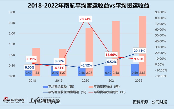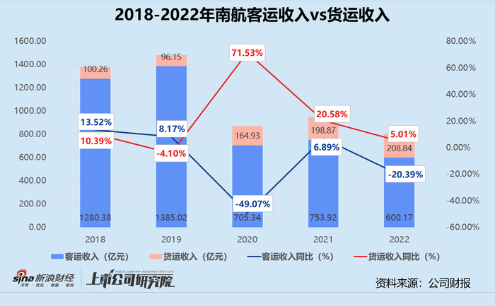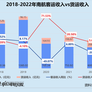 报告期内,南航实现客运收入600.17亿元,较2021年下降20.39%,约为2019年同指标的43.33%;货运收入录得208.84亿元,同比微增5.01%,是2019年同指标的2.17倍。在航空货运需求普遍降低的外部环境下,南航及时调整国内和国外货邮运输业务比例,组织“客改货”航班9098班,成为三大航司中唯一一家实现货运收入正向增长的公司。