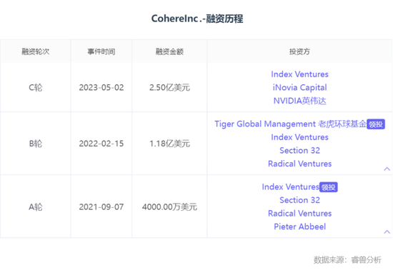早前,Cohere已经筹集了 1.7 亿美元,投资者包括Index Ventures,老虎全球基金(Tiger Global),AI 技术先驱、图灵奖得主Geoffrey Hinton,斯坦福大学教授李飞飞(Fei-Fei Li)等。