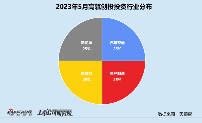 从投资阶段来看,高瓴创投本月参投的B轮融资事件数占比达75%。相较于其他早期投资机构,高瓴更偏好B轮和C轮阶段的企业,一年内二者合计占近三成。从所关注的行业赛道来看,本月的4笔投资均匀分布在汽车交通(自动驾驶)、新材料(特种纤维材料)、新能源(储能技术)和传统生产制造(化工产业)领域。