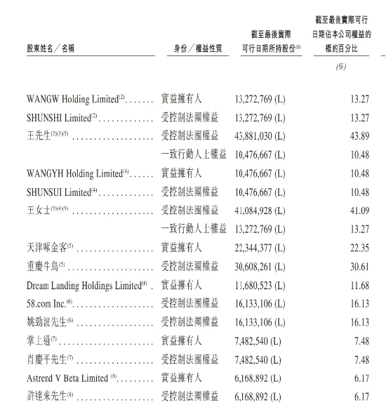 根据最新的招股书资料,王国伟持股13.27%,王玉华持股10.48%,另有7个由王氏兄妹全资拥有的员工持股平台合计持股约30.61%。此外,雷军通过苏州顺为和天津金米合计持有啄木鸟维修3.5%股权,姚劲波通过58同城旗下公司合计持有16.13%股权。