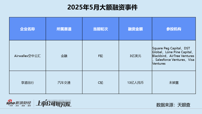 值得关注的是,5月21日,跨境支付平台「Airwallex空中云汇」完成3亿美元的F轮融资,投资方包括DST Global、Lone Pine Capital、Blackbird、Airtree、Salesforce Ventures等多家国际基金,投后估值达62亿美元。该笔交易金额折合人民币21.59亿元,约占披露融资总额11.8%。