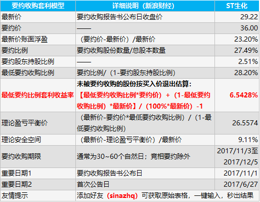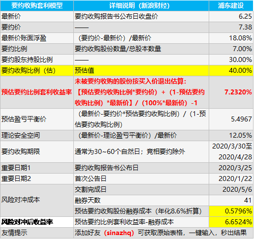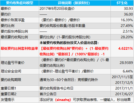为此,新浪财经设计了要约收购套利模型,只需要输入数值即可自动计算套利收益率、盈亏平衡价、安全空间等多项重要指标。添加微信(sinazhq)即可获取原始表格。