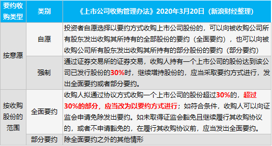 按照收购股份的范围,可分为全面要约和部分要约。全面要约就是向除收购人以外全体股东要约收购所有股份。部分要约就是按一定比例收购上市公司股份,部分要约收购比例至少是总股本的5%及以上。