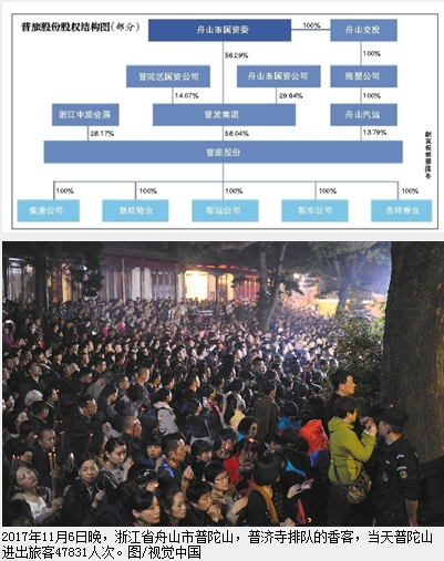 门票未能打包上市的普旅股份拥有景区多项服务的“垄断”权;子公司所产香火获普陀山佛教协会“指定”