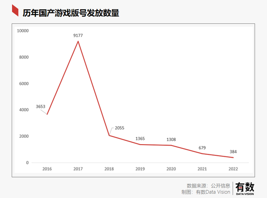 一款游戏需要从出版署获得版号才能上市,但近些年版号政策愈发收紧,成为游戏行业近乎无解的难题。相比于宽松时期,如今过审的游戏数量出现了断崖式下滑: