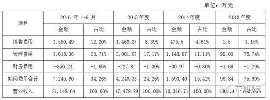 基本财务情况为:截止到2016年9月30日,总资产3.34亿、总负债0.93亿、所有者权益2.41亿。2016年1-9月,主营业务收入2.11亿、营业利润1.24亿、净利润1.18亿、扣除非经常性损益后归属于母公司所有者的净利润1.16亿。