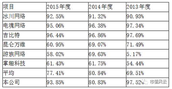 游戏行业普遍都是高毛利率,米哈游也不例外,15、16年的毛利率都维持在90%以上,这个数据在同行中也算很不错的,我们来看看行业对比数据。