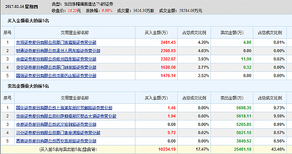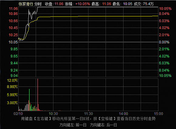 第二个交易日,受次新股整个板块利好的影响,张家港行全天封死涨停,成交4881万股,成交额达6亿多元,龙虎榜显示前一天进入的华林证券拉萨察古大道没有卖出,继续锁仓。在连续锁仓两天后,2月16日,张家港行再次一字板涨停,盘后龙虎榜显示,山东帮的另外两个营业部中信证券杭州四季路和国海证券济南历山路分别为买三和买四,而锁仓了三个交易日的华林证券拉萨察古大道成了卖二,全部出货,获利30%。