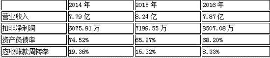 相较流动资产,仙乐健康的流动负债高达7.71亿元,占流动资产的94.60%。在流动负债中,短期借款2.27亿元,应缴税费1.26亿元,应付股利2.46亿元,三项合计5.99亿元。此外关注到流动比率和速动比率,2014-2016年,仙乐健康的速动比率均小于1倍,流动比率在去年底突破1倍,达到1.06倍。这显示企业短债偿债能力不强。