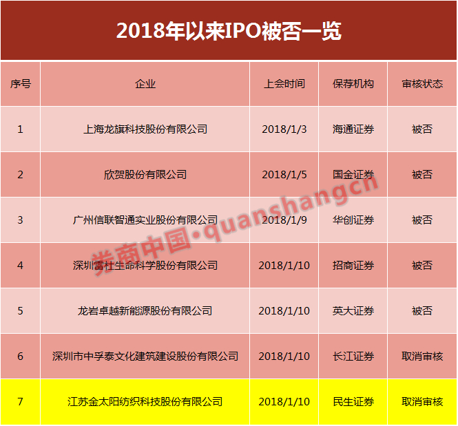 在上述2家被取消审核的企业中,江苏金太阳纺织科技股份有限公司比较特殊,和深圳市中孚泰文化建筑建设股份有限公司“尚有相关事项需要进一步核查”的取消审核理由不同,该公司因申请撤回申报材料而被取消审核,这也意味着江苏金太阳纺织科技股份有限公司的取消审核即终止审查,自行结束了此轮IPO发行进程。
