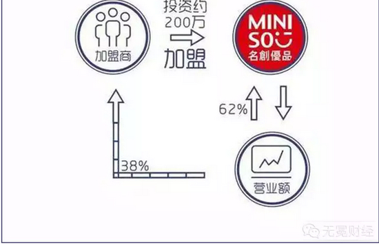 名创优品的裂变速度令人惊叹,其加盟店为主的轻资产运作是“秘诀”之一。加盟商每年拿出8万特许商标使用金,一次性缴纳75万元货品保证金,投资利润为每天营业额的38%(食品为33%),第二天即可到账。叶国富接受嘉程资本访谈时曾透露,开店投入约300万,按照年营业额700万-3000万估计,加盟第一年至少可获266万元投资利润,“一年多能回本”。