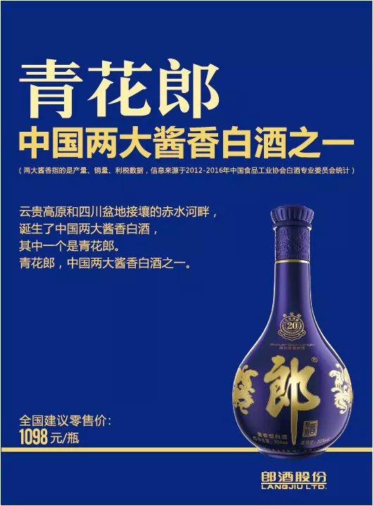 完整的广告语则是,云贵高原和四川盆地接壤的赤水河畔,诞生了中国两大酱香白酒,其中一个是青花郎。