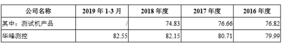 长川科技2016年至2018年测试机的毛利率,分别为76.82%、76.66%、74.83%,逐年下降。
