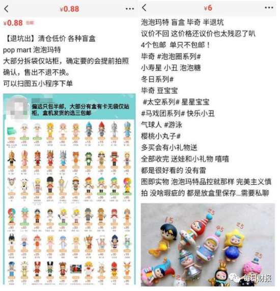 不少盲盒玩家已开始“退坑”,在闲鱼低价批量售卖自己曾经的收藏。一些“退坑”卖家将盲盒普遍标价在50元以下,部分非热门IP标价低至10-20元。