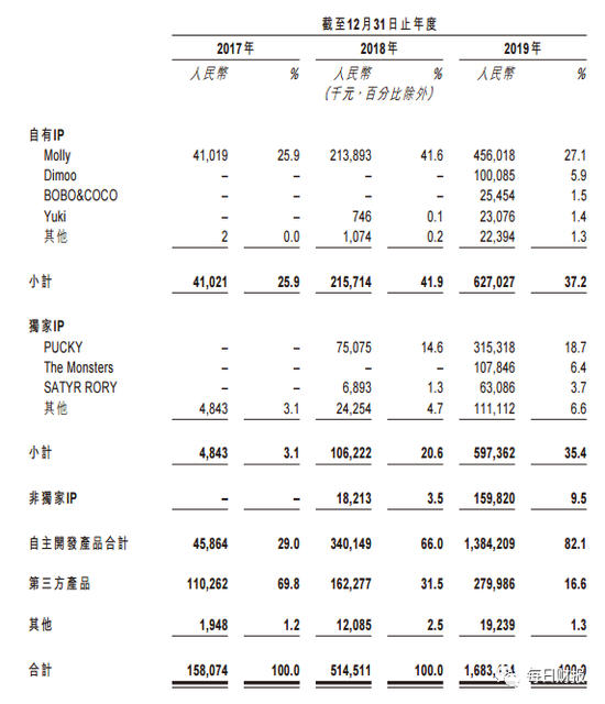 虽然泡泡玛特有80多个IP,但是真正能带来大量营收的IP却不超过5个,其中爆款IP“Molly”就占了3成收入。