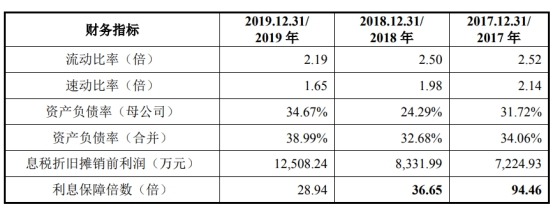 上述同期,行业可比公司的资产负债率均值为9.15%、9.67%和13.55%,流动比率均值分别为8.59、8.33和7.36,速动比率均值分别为6.81、6.53和5.75。