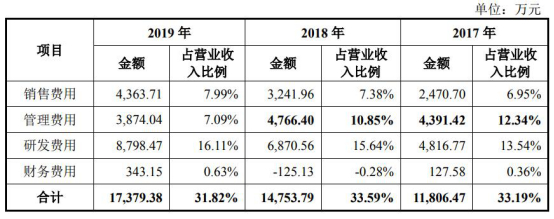 2017年至2019年,奕瑞科技的销售费用分别为2470.70万元、3241.96万元和4363.71万元,占营业收入比例分别为6.95%、7.38%和7.99%,金额和比重持续上升。