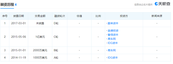 随后嘀嗒的发展便日渐顺畅。天眼查显示,2014年11月,嘀嗒先是获得了IDG资本1000万美元的A轮融资;2015年1月,获得李斌的易车网领投的2000万美元B轮融资;2015年5月,嘀嗒出行 C轮融资中,李斌的易车网与崇德基金、挚信资本、IDG共同投1亿美元;2017年3月,嘀嗒出行 D轮融资,李斌再度出手,不过未对外披露具体金额。