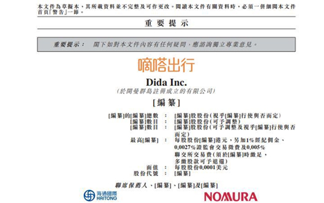10月8日,嘀嗒出行正式向香港交易所公开递交招股书,拟在港交所挂牌上市,海通国际资本有限公司及野村国际(香港)有限公司为联席保荐人。