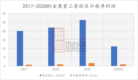 图3:2017年-2020年上半年金鹰重工营收及归母净利润