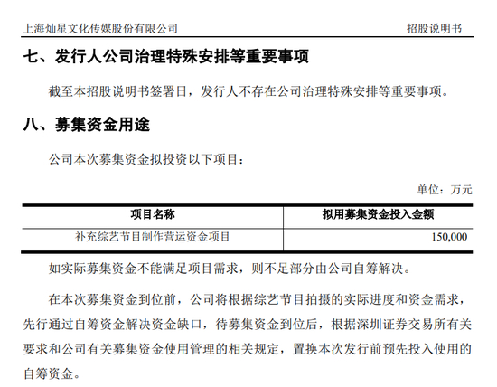 募集资金15亿元用于补充综艺节目制作营运资金项目