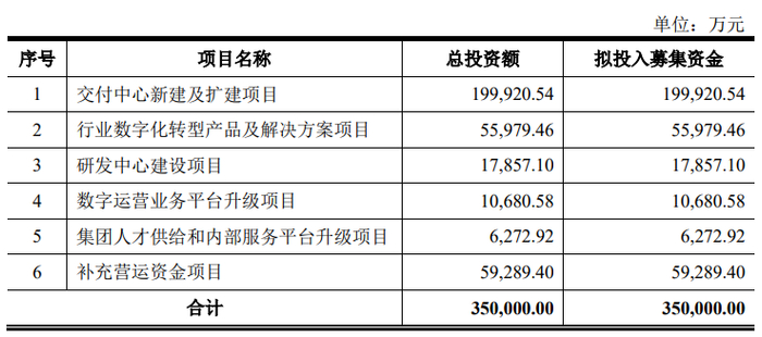 从募集资金投向方面,也很难看出软通动力有多大转型意愿。