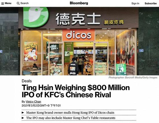 彭博引述知情人士指,审议尚处于初期阶段,该公司可能会决定不进行IPO。对上述消息,顶新集团尚未发表评论。截至发稿,德克士方面未对小食代的查询作出回复。